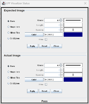 Our JUnit test, LinePropertiesVisualTest, opened the saved images, created a new image using the same data that was used to generate the saved image, and compared the two.