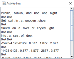 Application Tess4JDemo3 is almost identical to Tess4JDemo2, but it highlights the white space Tesseract uses to format its output. In the figure at right, you see that the application has substituted a period for every space and printed out the Unicode value of every line separator. From this, we can see that Tesseract delimits vertical lines using the Unix convention (linefeed (0xA)) as opposed to the Windows convention (carriage return (0xD), linefeed (0xA)).
