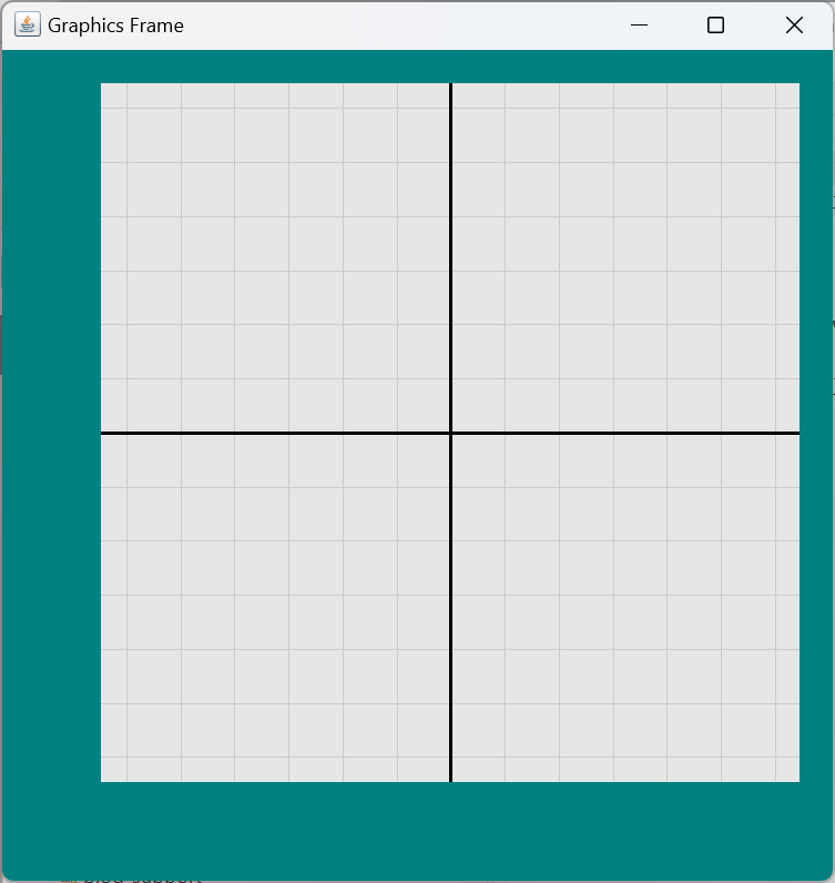 1 2 3 4 5 6 7 8 9 10 11 12 13 14 15 16 17 18 19 20 21 22 23 24 25 26 27 28 29 30 31 32 33 34 35 36 37 38 39 40 41 42 43 44 45 46 47 48 49 50 51 52 53 54 55 56 57 58 59 60 61 62 63 64 65 66 67 68 69 70 71 72 | public void paintComponent( Graphics graphics ) { // ... drawGrid(); drawAxes(); paintMargins(); // ... } private void drawGrid() { gtx.setColor( gridLineColor ); gtx.setStroke( new BasicStroke( gridLineWeight ) ); float gridSpacing = gridUnit / gridLineLPU; float numLeft = (float)Math.floor( gridWidth / 2 / gridSpacing ); float leftXco = centerXco - numLeft * gridSpacing; for ( float xco = leftXco ; xco <= maxXco ; xco += gridSpacing ) { Line2D gridLine = new Line2D.Float( xco, minYco, xco, maxYco ); gtx.draw( gridLine ); } float numTop = (float)Math.floor( gridHeight / 2f / gridSpacing ); float topYco = centerYco - numTop * gridSpacing; for ( float yco = topYco ; yco <= maxYco ; yco += gridSpacing ) { Line2D gridLine = new Line2D.Float( minXco, yco, maxXco, yco ); gtx.draw( gridLine ); } } private void drawAxes() { gtx.setColor( axisColor ); gtx.setStroke( new BasicStroke( axisWeight ) ); Line2D line = new Line2D.Float(); // x axis line.setLine( centerXco, minYco, centerXco, maxYco ); gtx.draw( line ); // y axis line.setLine( minXco, centerYco, maxXco, centerYco ); gtx.draw( line ); } private void paintMargins() { Rectangle2D rect = new Rectangle2D.Float(); // top margin rect.setRect( 0, 0, currWidth, marginTopWidth ); gtx.setColor( marginTopBGColor ); gtx.fill( rect ); // right margin float marginRightXco = currWidth - marginRightWidth; rect.setRect( marginRightXco, 0, marginRightWidth, currHeight ); gtx.setColor( marginRightBGColor ); gtx.fill( rect ); // bottom margin float marginBottomXco = currHeight - marginBottomWidth; rect.setRect( 0, marginBottomXco, currWidth, marginBottomWidth ); gtx.setColor( marginBottomBGColor ); gtx.fill( rect ); // left margin rect.setRect( 0, 0, marginLeftWidth, currHeight ); gtx.setColor( marginLeftBGColor ); gtx.fill( rect ); } |